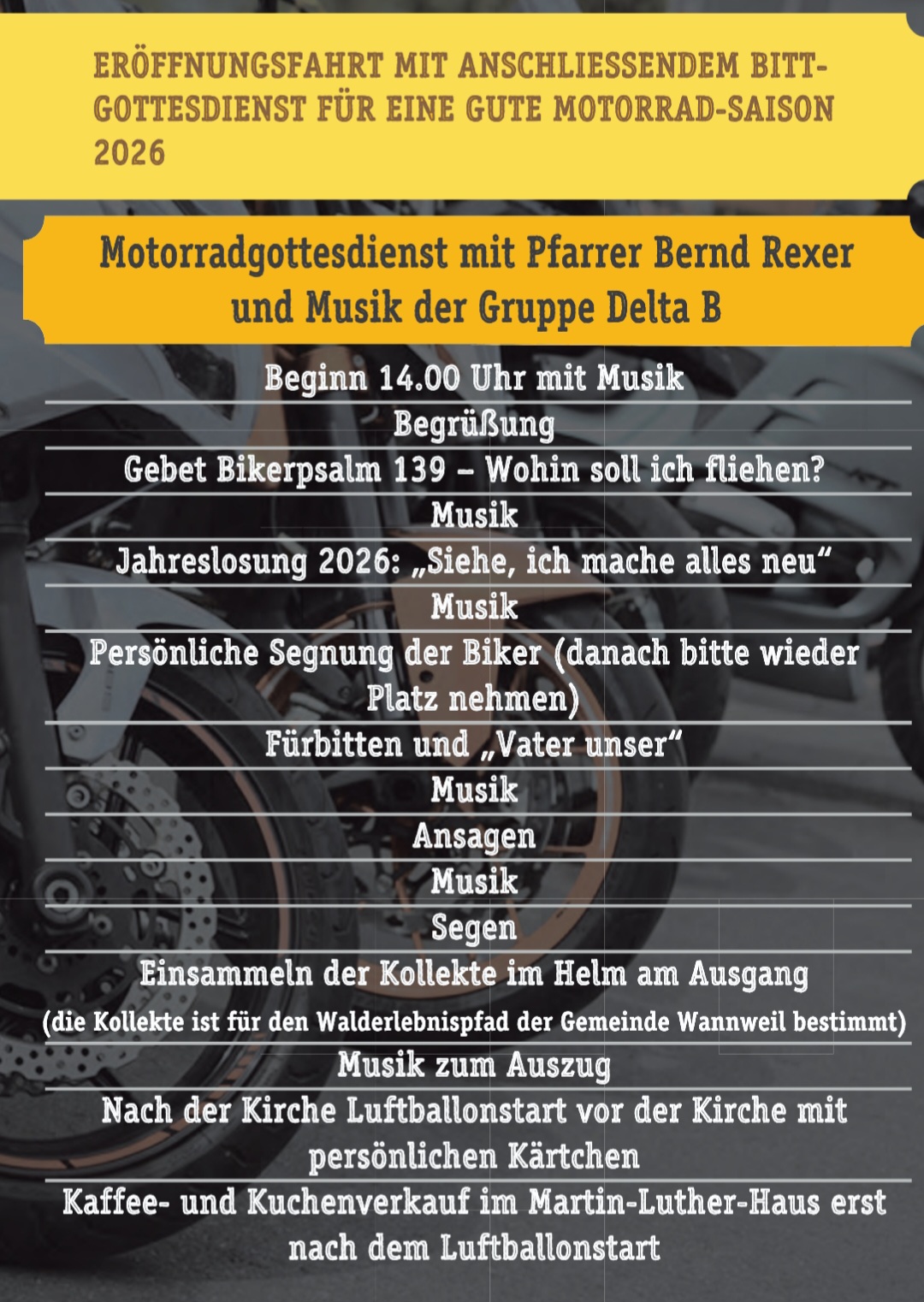 ⛪ Veranstaltung: 20. Motorrad-Korso mit anschliessendem Bittgottesdienst